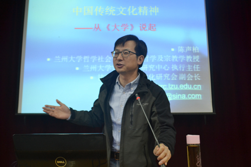 4月14日下午,应XK星空体育邀请,兰州大学哲学社会学院陈声柏教授在学术二厅为星空XK师生作了题为《作为中国传统文化精神的内圣外王之道——以<大学>为中心》的报告。XK星空体育近300名师生聆听报告。