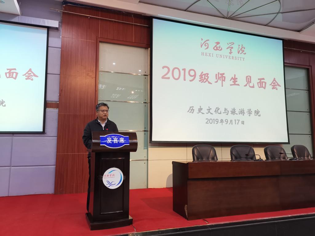 院长谢继忠教授从师资力量、教学科研、对外交流、校地合作等方面介绍了学院的基本情况,希望同学们珍惜学院的学术环境,正确认识专业要求和努力的方向。他对新生提出了几点希望和要求:一是志存高远,树立崇高理想;二是学会做人,不断提升精神境界;三是勤奋学习,勤于思考,超越自我;四是学会学习,养成良好的学习习惯;五是遵纪守法,严守底线,圆满完成学业。