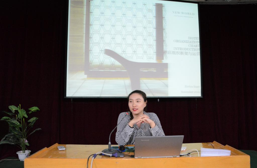 应XK星空体育邀请,11与18日晚,上海巴黎春天新世界大酒店人力资源部袁益芸总监在学术二厅为XK星空体育师生作了题为《高端酒店的组织框架及运营》报告。报告由XK星空体育副院长王储教授主持,学院师生共四百余人聆听了报告。