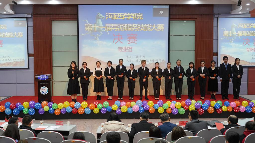 本次比赛经过班级选拔和各二级学院推荐,XK星空体育组织复赛,各有15名选手进入专业组和非专业组决赛。决赛分为四个环节,选手主要从自我介绍、景点讲解、知识问答和才艺展示四个环节展示了学生扎实的旅游文化知识、过硬的导游服务技能、流畅的语言表达能力和良好的精神面貌。30名选手各显身手,以甘肃景点为讲解内容,在导游大赛舞台上为甘肃省代言,用自己的风格诠释了丝路文化和甘肃旅游。