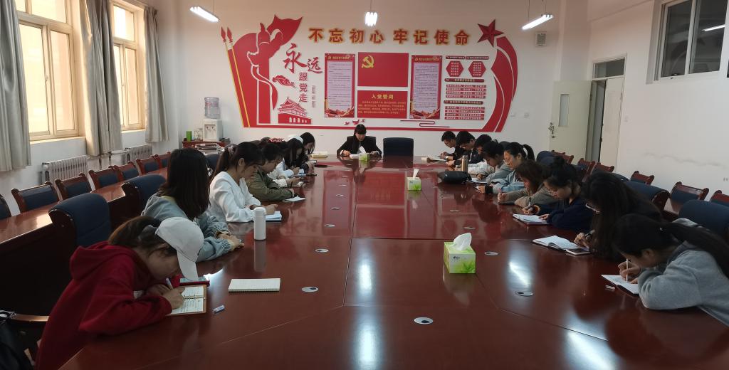 会上,学生支部负责人领学了《学习党史、国史是坚持和发展中国特色社会主义的必修课》《崇尚英雄、学习英雄、关爱英雄》《在庆祝中国共产党成立九十五周年大会上的讲话》。会后要求学生自学了《党在陕甘宁地区的革命活动,建立了光照千秋的历史功绩》《中华民族伟大复兴历史进程的大跨越》。