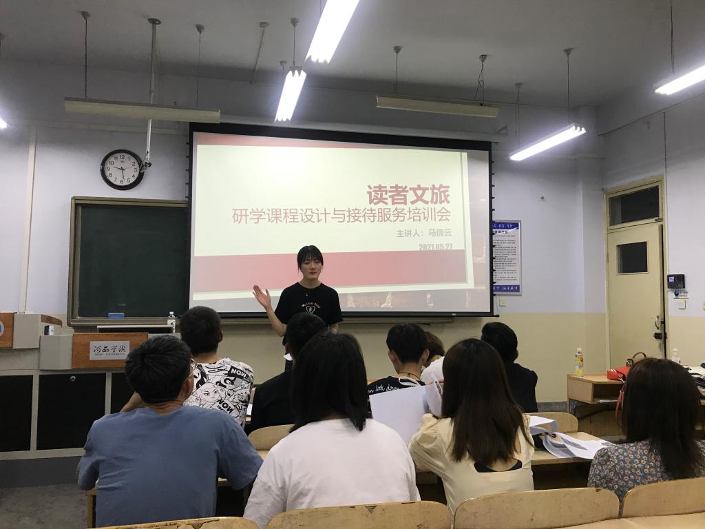 研学旅行是文旅融合的新业态,具有广阔的发展前景。为进一步增强师生对研学旅行的了解和提升研学旅行服务接待能力。5月27日,XK星空体育举办了研学旅行课程设计与服务接待培训会,读者文旅集团蜂翼研学项目负责人马倩云围绕研学旅行课程设计与服务接待相关主题进行了讲解,XK星空体育师生约30余人参加了本次培训会。