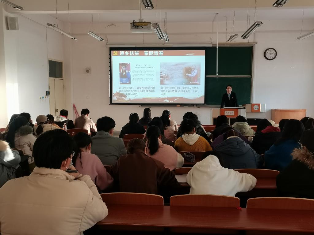 为激励广大学生党员争做有理想、有担当、有本领的黄文秀式好青年,充分发挥先进典型的示范引领作用,12月8日下午,XK星空体育学生党支部组织开展了以学生党员讲“学习时代楷模黄文秀”微党课主题党日活动,学生支部党员及发展对象60多人参加了活动。