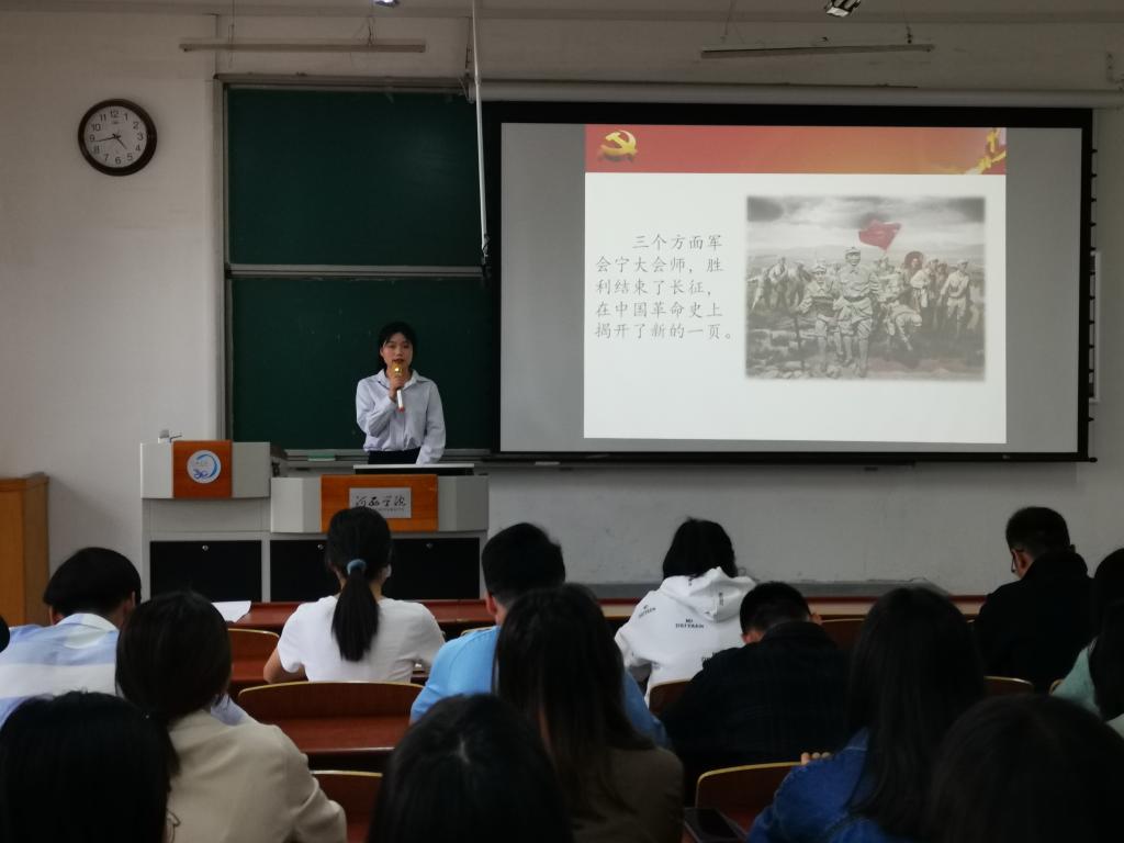 活动中,学生党员讲述了《红五军血染大墩梁》和《长征》,带领大家缅怀先烈、抚今追昔,感悟“大墩梁上埋忠骨,烈士英名颂千秋”的英雄情怀,同时也引领大家学习革命先辈们在长征途中攻克难关的决心,领悟长征精神为中国革命不断从胜利走向胜利提供了强大精神动力。入党积极分子分享了《黄显声虎入笼中威不倒》和《长津湖冰雕连的故事》,弘扬了黄显声“虎入笼中威不倒,浩然正气贯长虹”的英雄气概和冰雕连英勇顽强、不怕牺牲的革命精神。
