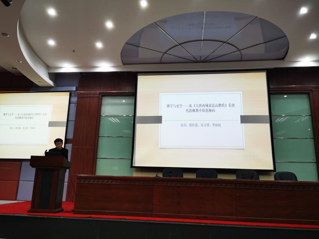 报告会上,庞宏宇、秦淑华、刘雪、李婕、牛冬、王小娟、朱加乐、王炯炯、鲍春阳、李柏岐等同学代表各自小组,分别作了题为《鸠摩罗什与玄奘》《胡旋舞在长安》《中原书法在敦煌大放异》《从敦煌壁画(飞天)看汉唐宫廷乐舞》《武周时期敦煌、长安两地造像艺术交流》《唐长安西明寺与敦煌的交流》《敦煌—长安,历史上的双向奔赴——以佛教交流为例》《敦煌石窟中的长安样式》《佛学与史学——从<大唐西域求法高僧传>看唐代的佛教中原化倾向》等专题考察报告。