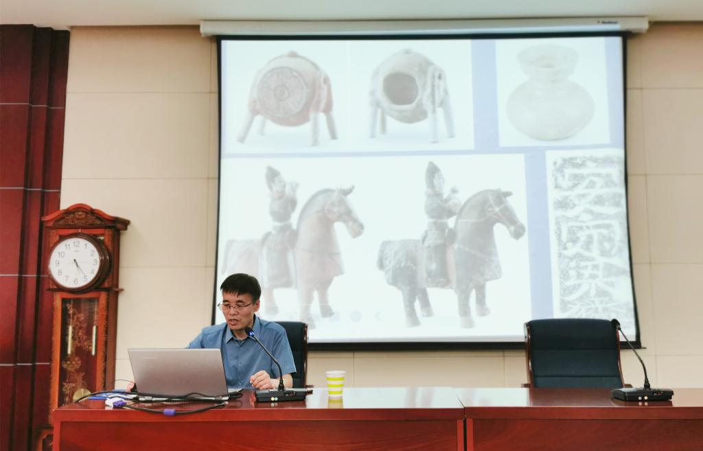 报告从介绍关中地区十六国墓出现的时代背景和学术界的研究现状开始,通过大量一线考古实例,运用“二重证据法”重点讲述了“关中十六国墓的发现”“鼓吹俑和女乐俑”,以及“咸阳铁一局三处十六国墓与河西地区的关系”等问题,并就学术界对十六国墓葬中鼓吹俑和女乐俑的相关认识作了细致梳理和讨论。刘卫鹏指出,关中地区十六国墓具有鲜明的地域特色,其随葬的相关器物及组合,尤其是女侍俑的发髻和妆饰与河西地区十六国墓出土的同类器物、妇女形象相似,反映了两地相互之间的交流与影响;关中地区十六国墓上承西晋,下启北朝,其发展丰富的俑群制度通过北朝一直影响到隋唐,是我国墓葬制度发展史上不可缺少的重要一环。报告图文并茂、深入浅出,引起了与会师生的强烈共鸣。