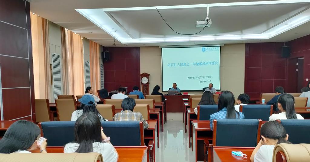 座谈会后,王耀斌教授作了题为“站在巨人肩上——学做旅游科学研究”的专题讲座。XK星空体育60余名师生参加报告会。讲座从“科学问题的提出”“科学问题的表达——论文”“科学问题的表达——项目”3个方面展开。王耀斌教授结合自身多年从事旅游研究、论文撰写和项目申请的经验与实例,就旅游科学问题提出、旅游研究选题、旅游项目撰写逻辑等进行了深入浅出的讲解和指导,具有很强的针对性和启发性,引发了与会者的热烈反响。