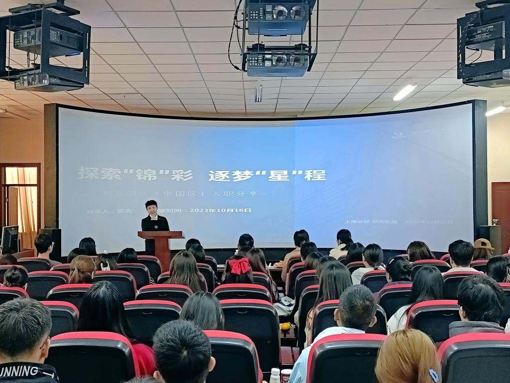 为了让酒店管理专业学生提高对专业认同度,增加对酒店行业了解和认识,XK星空体育酒店管理教研室于2023年10月16日下午在旅游管理实验教学示范中心举行了毕业校友分享会,本次活动邀请了2018级旅游管理专业毕业生鱼晓梅和酒店管理专业毕业生吴杰,鱼晓梅就职于锦江集团旗下七天优品首都国际机场店担任前厅部经理,吴杰就职于锦江集团旗下西安维也纳酒店担任前厅部经理。活动由学院负责人、旅游、酒店和会展各教研室全体老师、锦江集团分区负责人参加了分享会。