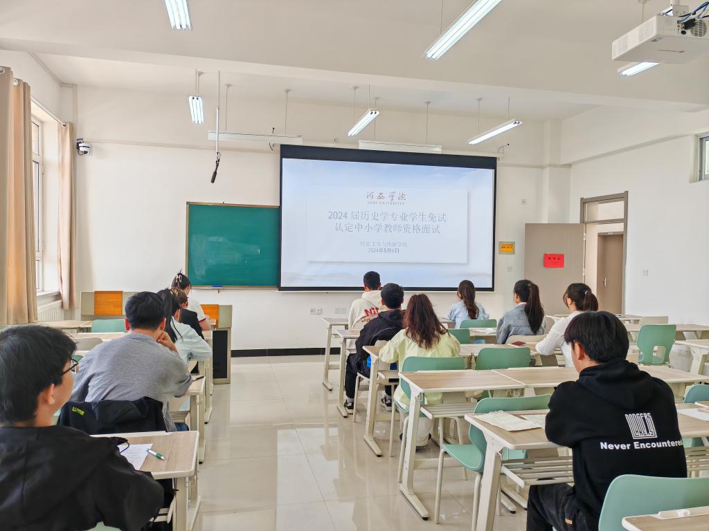 此次认定工作共有98名历史学专业同学参加,分别于4月26日和5月6日进行了笔试和面试。为保证免试认定教资工作顺利进行,学院设立工作小组,制定工作实施方案,明晰任务分工,从学生报名、组织命题、过程考核等全过程管理,多措并举做好服务保障工作。