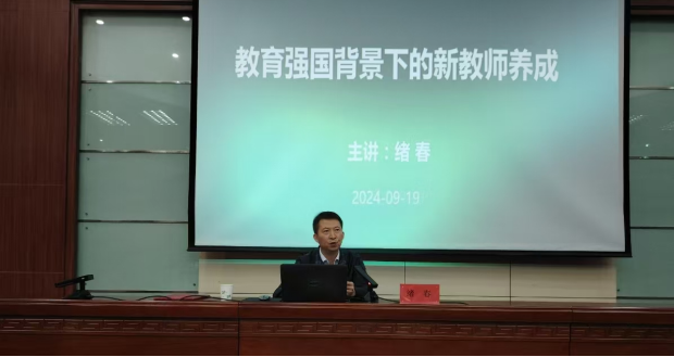 9月19日,学院在图书馆报告厅举办教学研究报告会暨本科生校外导师聘任仪式。张掖市金安苑学校高级教师、学院外聘副教授绪春以《教育强国背景下的教师养成》为题作报告。